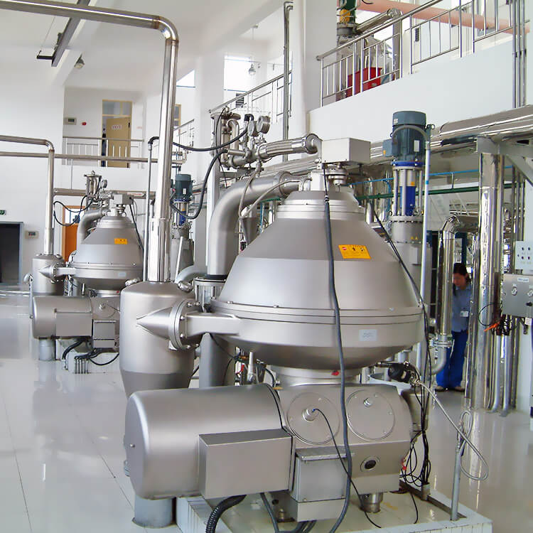 堿煉脫酸工藝堿煉脫酸是整個精煉過程中*關鍵的一步,它為油脂的脫色、脫臭和深加工創造了條件。經脫酸后,油脂質量得到改善、穩定性提高,延長貯存時間。堿煉法利用堿中和油中的游離脂肪酸生成皂,生成的肥皂能吸附雜質。然后用重力沉降分離法或離心機將肥皂和雜質從油中分離出來。油脂脫酸的主要設備盤式離心機主要由機身